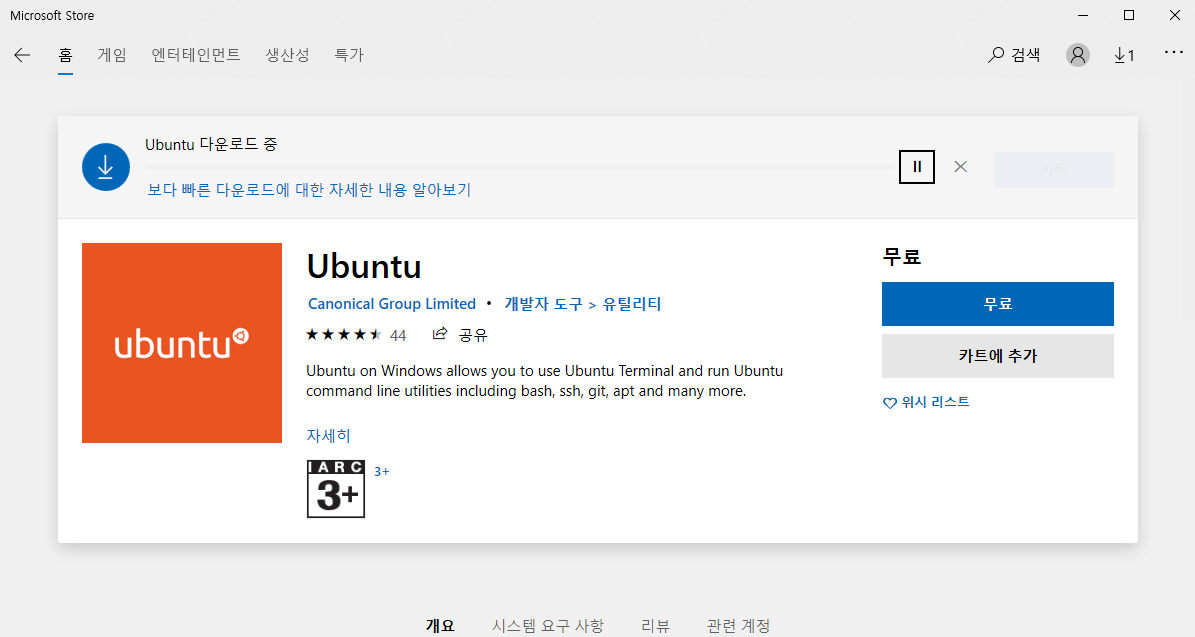 Microsoft store로 이동하여 ubuntu를 검색합니다.