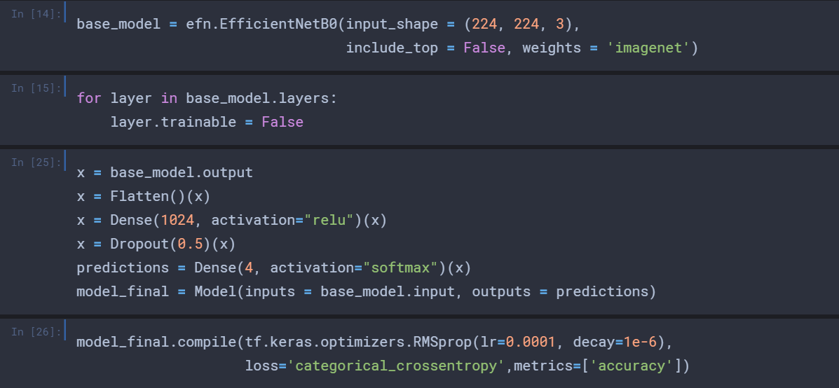앞의 글에서는 바로 EfficientNet을 사용한 것처럼 서술했지만, 'fill_mode'의 모든 방법을 사용하여 augmentation한 후 VGG-16, 19 도 사용했지만 비슷한 결과(accuracy : 51~54)였고, pooling 층에서 사람이 하나하나 parameter를 조정하지 않아도 되는 EfficientNet으로 방향을 돌리게 되었다.