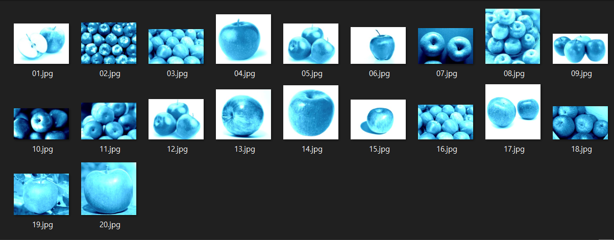 위의 사진처럼 모두 같은 사과 사진에 필터를 씌워 blue, green red로 분류해두었고, augmentation을 이용해 데이터를 증폭시켰다. 이후 모델을 만들었다.