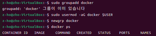 - docker 그룹이 있다면 docker group에 user를 추가해줍니다.